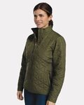 Holloway Ladies Repreve Eco Jacket. 100% polyester MicroTec woven face with durable water-repellent finish to keep you dry. Made from Repreve 50% recycled polyester quilting for lightweight warmth. Weld engineered quilting that's decoration friendly. 78% polyester/22% spandex inserts, peached for softness. Ladies' Fit. Woven label. Front zipper with antique nickel zipper pull and storm flap. Front zippered pockets. Half-elastic cuffs. Dropped tail.
